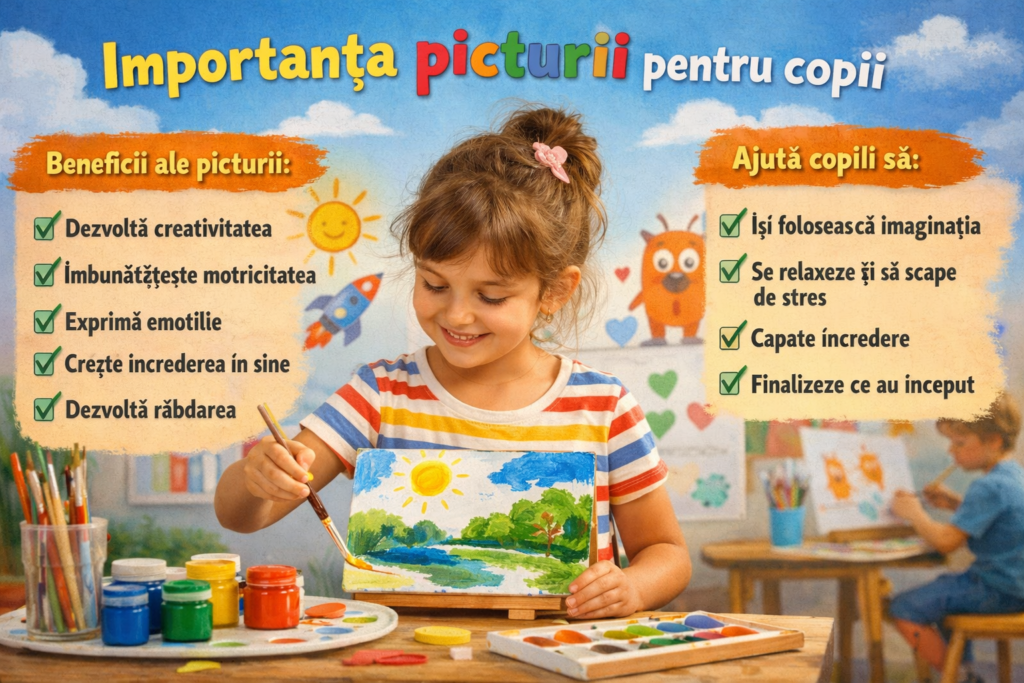 Pictura este mai mult decât joacă – ajută copiii să își dezvolte creativitatea, să își exprime emoțiile și să își îmbunătățească motricitatea fină. Descoperă cum să îi încurajezi să picteze acasă și cum picturile personalizate pot inspira și mai multă imaginație.